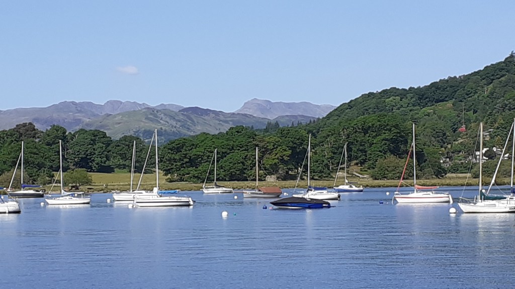Meanwhile, Peter and Val hopped on board the Swift, a passenger boat that plies a regular service up and down the top half of lake Windermere. With such a lovely and sunny day, it couldn’t have been better to be out on the water, the forests and hills around the blue lake looking picture-postcard perfect. We enjoyed the commentary and the ever-varied scenery. On the way back, we hopped off at Brockhole, the National Trust’s headquarters on Windermere. The visitor centre there – the UK’s first, in 1967 – was a wealth of fascinating information about the landscape, history and flora & fauna of the Lake District. One thing that stood out for us was the prominence of old Norse, Celtic and English words for so many of the landscape features – pikes, fells, meres, becks, and others.