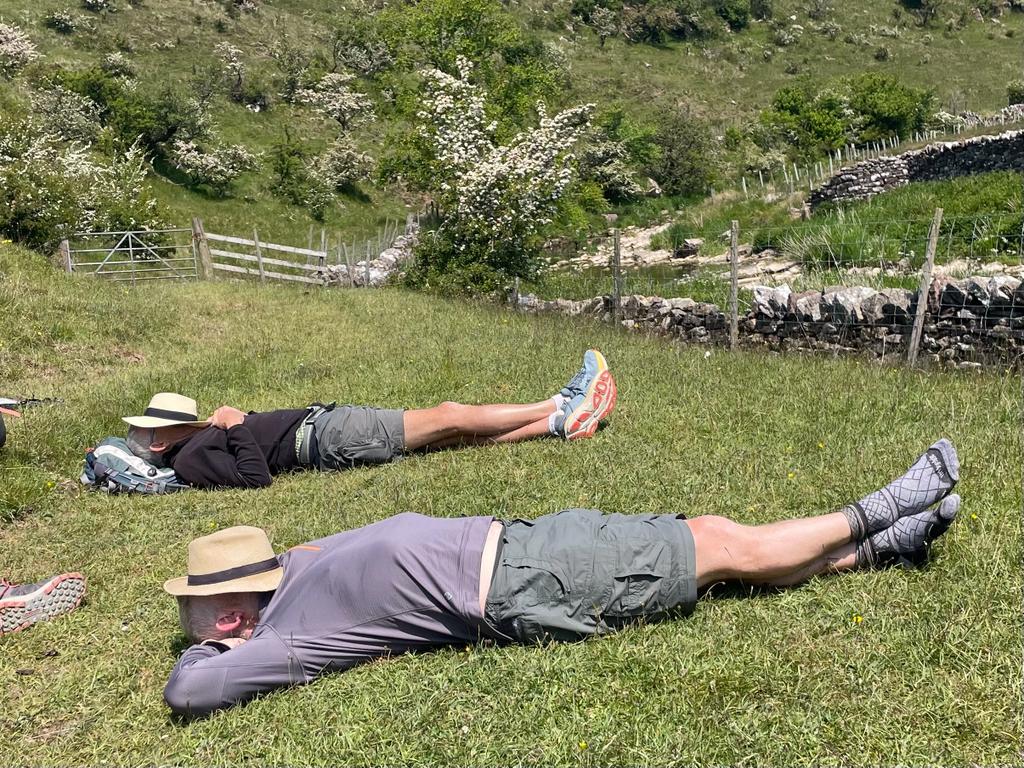 We stopped for lunch next to a beautiful old stone bridge crossing Scandal Beck. We managed to find a spot out of the wind, and after lunch Adam and Peter stretched out for a snooze.