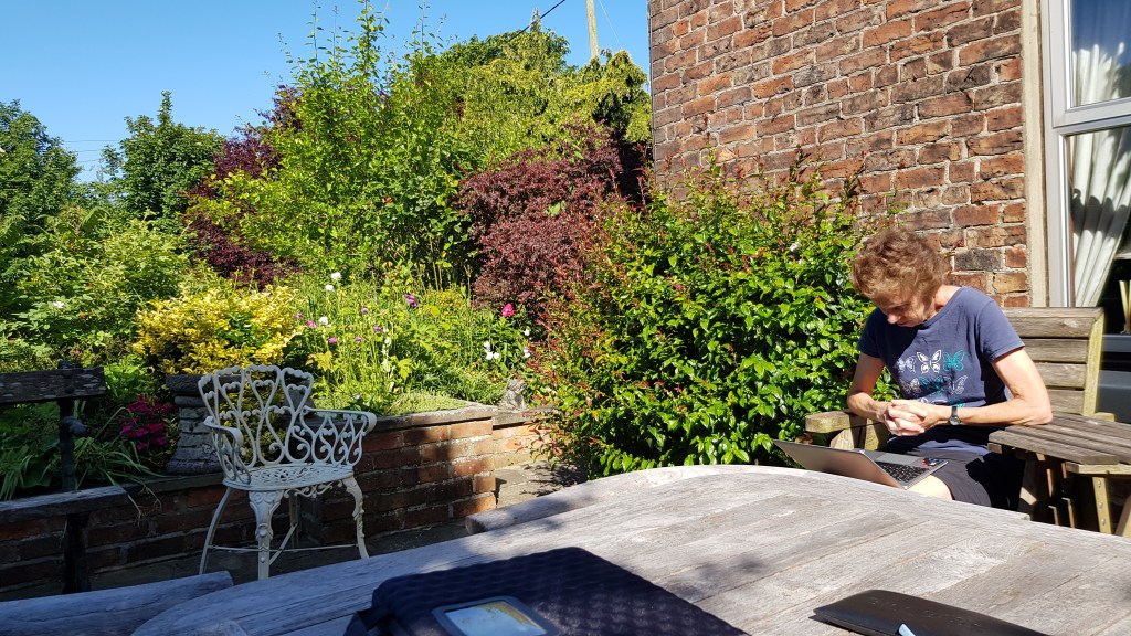 Having banked some extra kilometres yesterday, and with probably only another 12-14 to go, we treated ourselves to a very lazy start. Breakfast at Lovesome Farm was similar to many others, with the pleasant addition of an item entitled “Booster” which we all ordered. This consisted of stewed fruit, fresh fruit, muesli, seeds and yoghurt. The tea served at breakfast is now Yorkshire Tea, a very strong brew – this morning’s tea had perhaps four spoons of tea leaves per cup. Not for the faint hearted. Peter is down to the semi-English breakfast, just bacon and black pudding. We tarried in the garden for some time before leaving (the football commentary did take a little time to compose), enjoying the ambience of the summer flowers, finally hitting the road a little after 11.