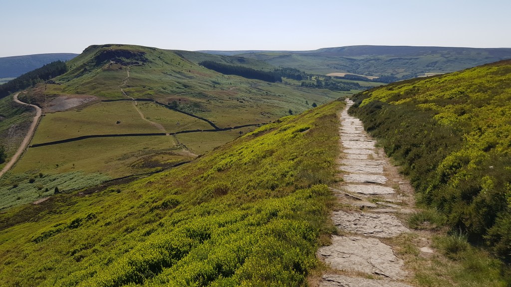 Four kms already under our belt, we climbed up to the Moors and began a long, straight, very hot hike across to Blakey Ridge on a rail trail. The Moors are lovely, but we found ourselves feeling less-ish, rather than moor-ish as the day wore on as the sun was quite relentless. More than 70% of the heather in the world grows on this series of moors. We were surprised by the variation in colour of the heather from bright green, Barbie-pink new shoots, to all shades of purpley grey.