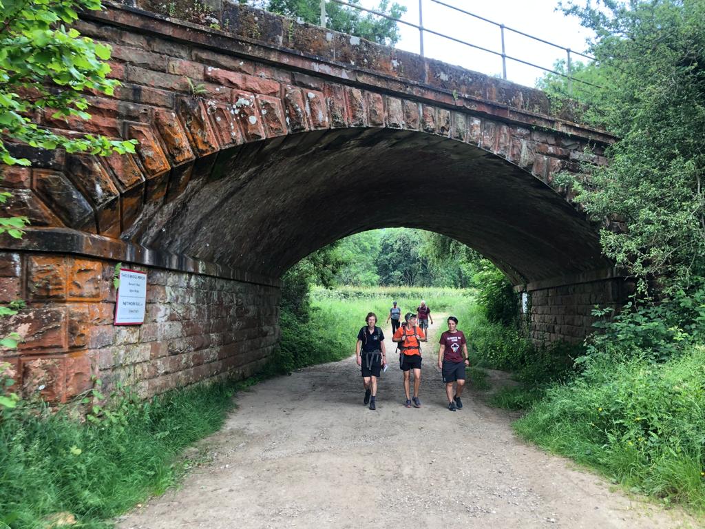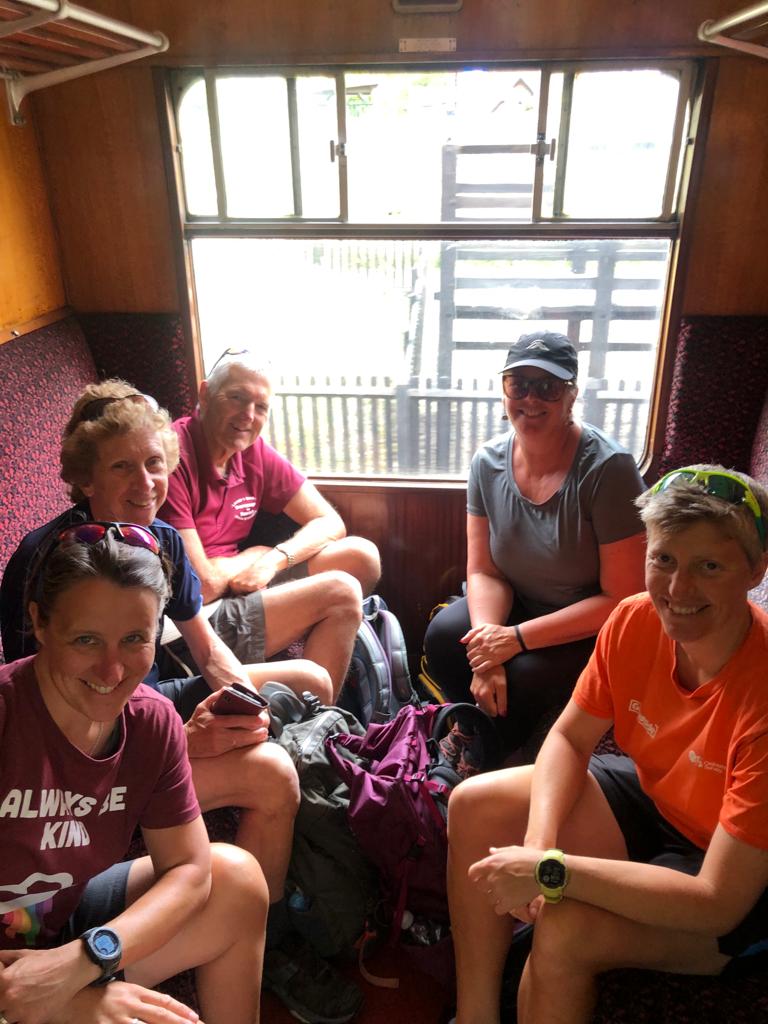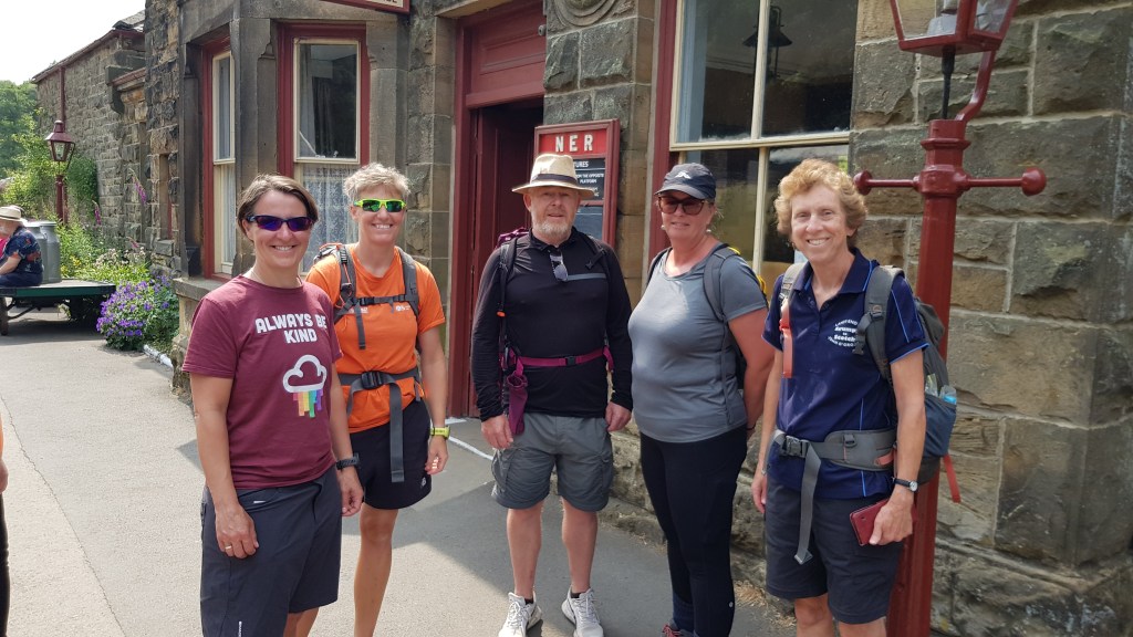 Our penultimate day on the Coast to Coast – 15 km from Glaisdale to Intake Farm at Littlebeck. It was a day of three parts. Debs and Jo joined us once again this morning for the first part of our walk to Grosmont – a delightful ramble through Arncliffe Woods. Squirrel sighting – 1. First stop was Beggar’s Bridge, which legend says was built by a local who left the village to go find his fortune. On the night before he left, he was unable to visit his sweetheart to say goodbye because the River Esk was flooded. On his return, fortune made, he married her, and built the bridge so that no other lovers would be kept apart. Awww.
