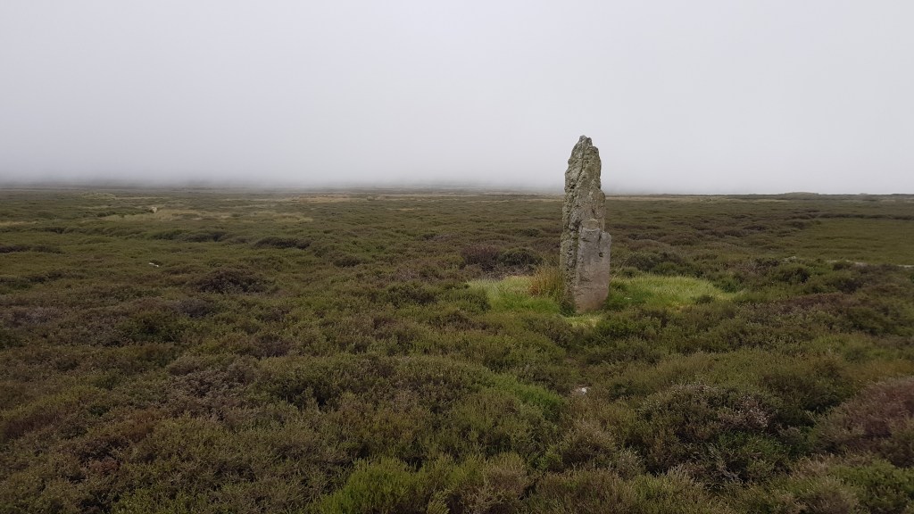 Two days ago, the moor was bakingly hot and there was no respite from the sun. Today, it was atmospheric and, as we walked, a series of standing stones arose eerily in the heather. It still wasn’t damp enough for our wet weather gear, and looking at the forecast, it is very likely we will make it to the end of the journey without breaking it out.